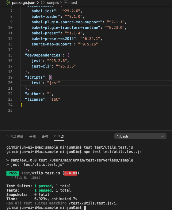 Package.json의 script 까지 손봐주고 나면 정상적으로 cli 로 jest사용이 가능하다!