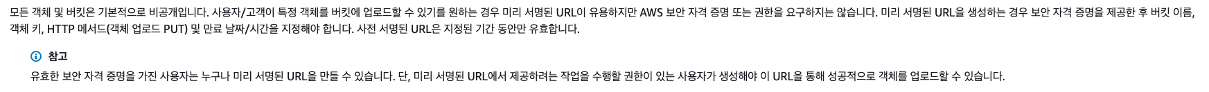https://docs.aws.amazon.com/ko_kr/AmazonS3/latest/dev/PresignedUrlUploadObject.html