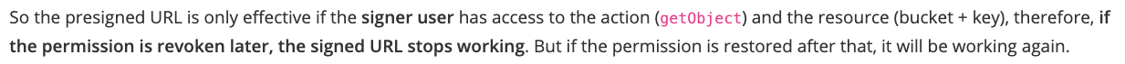 즉, 람다함수에 S3 access 권한이 없기에 만들어 놓은 signed url이 의미가 없어진것이다.