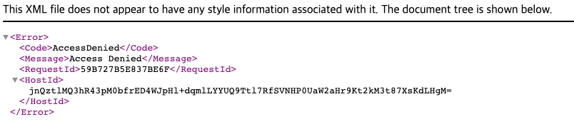 응? 왜 안뜨지? 싶겠지만 자세히 보면 AccessDenied 에러가 발생하였다.