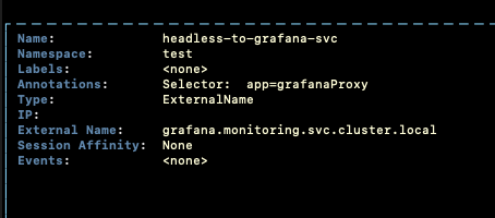 따라서, headless-to-grafana-svc라는 headless service를 아래와 같이 만들어 준다.