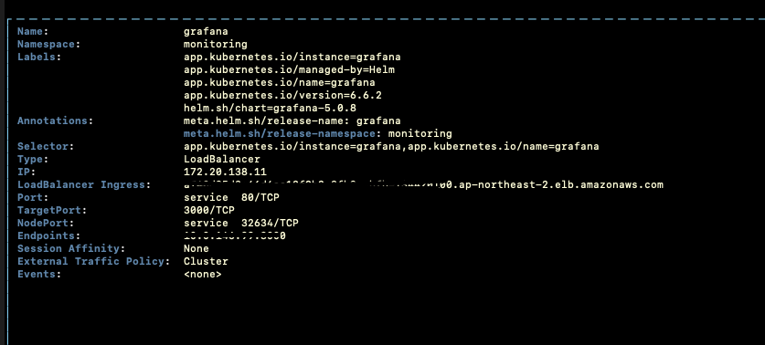 하지만, 위에 예제에서는 Grafana를 portforwading 으로 접근하도록 가이드를 하고 있으나,